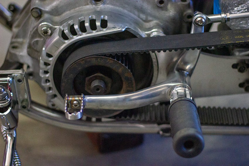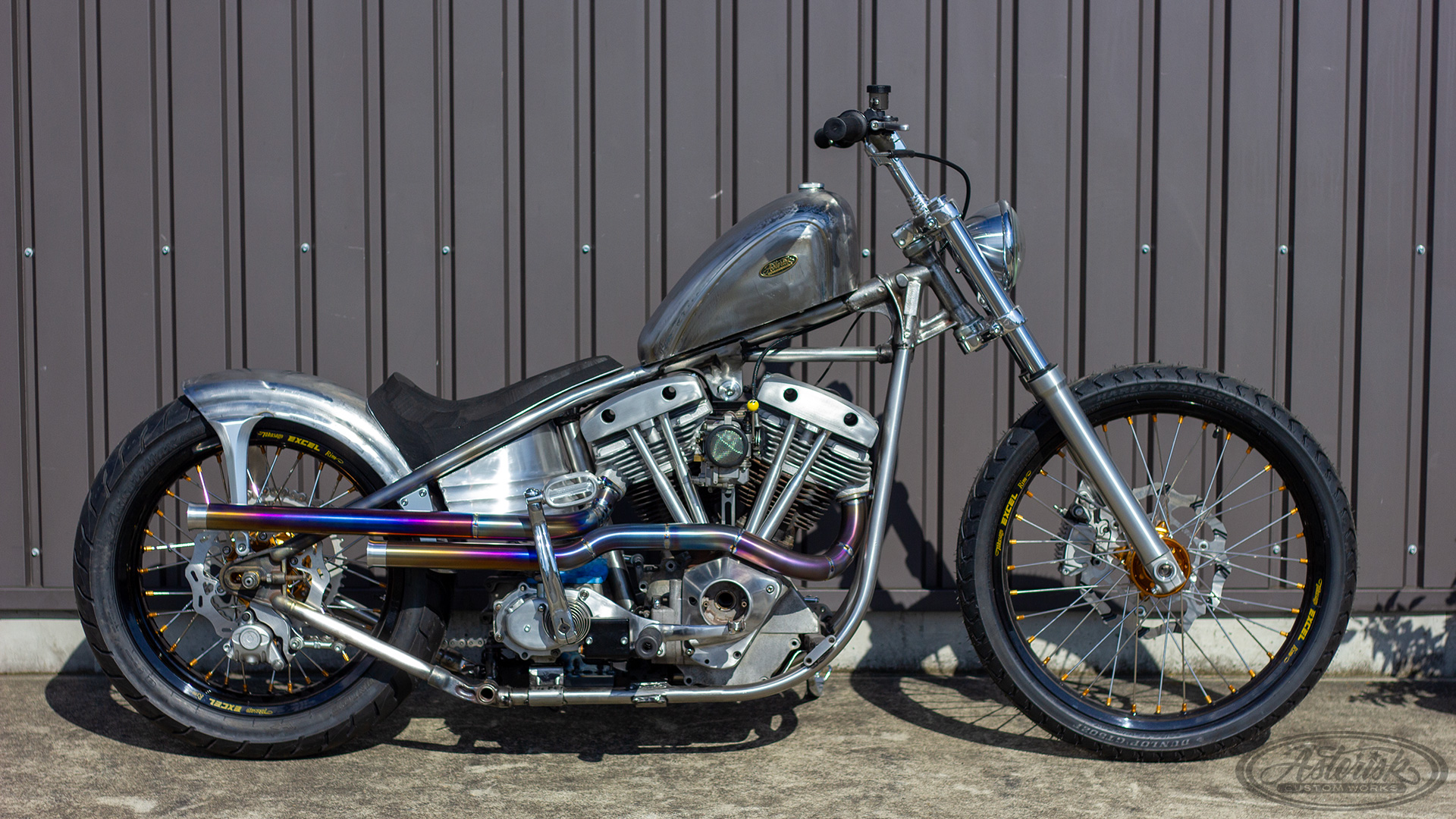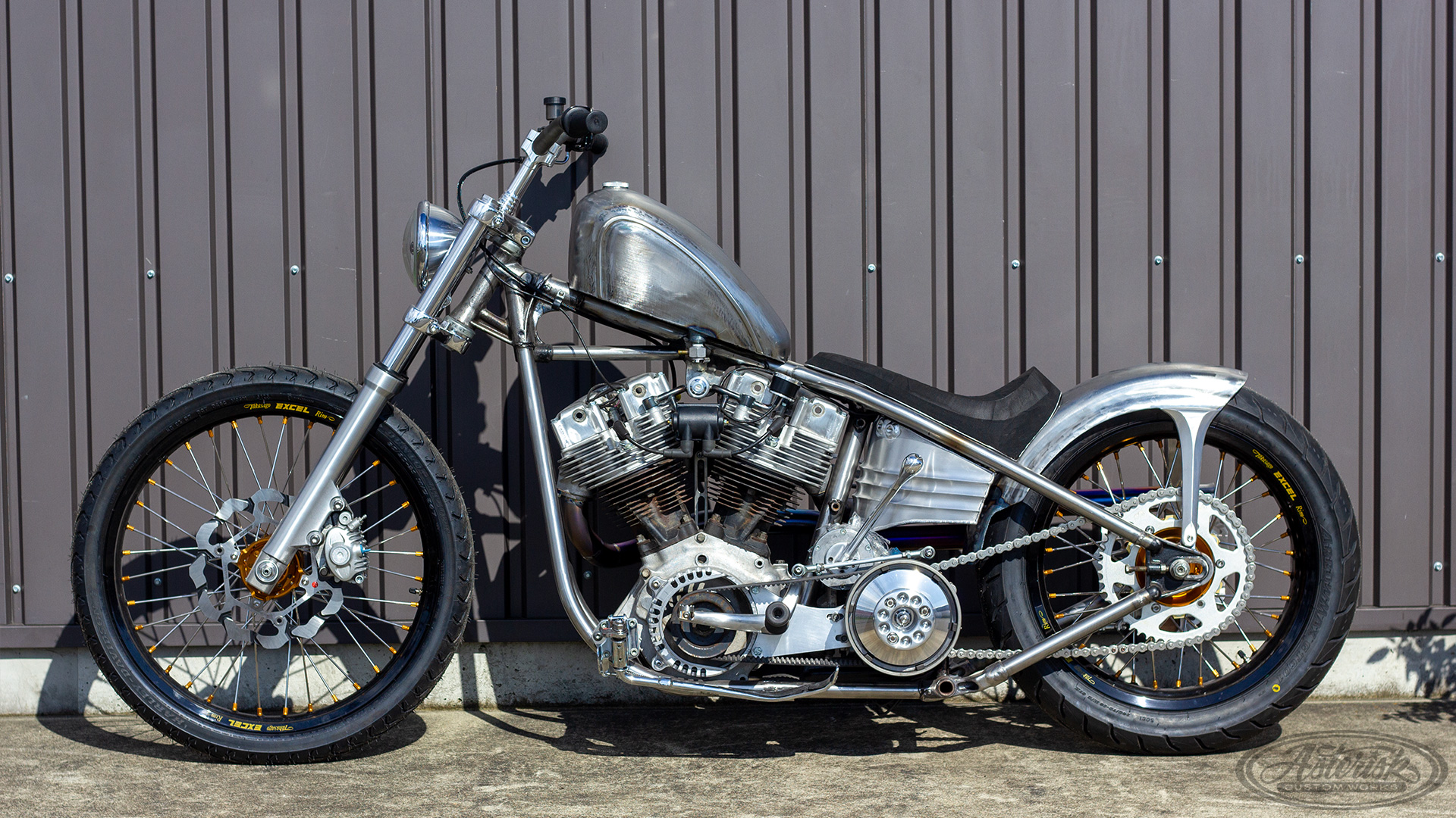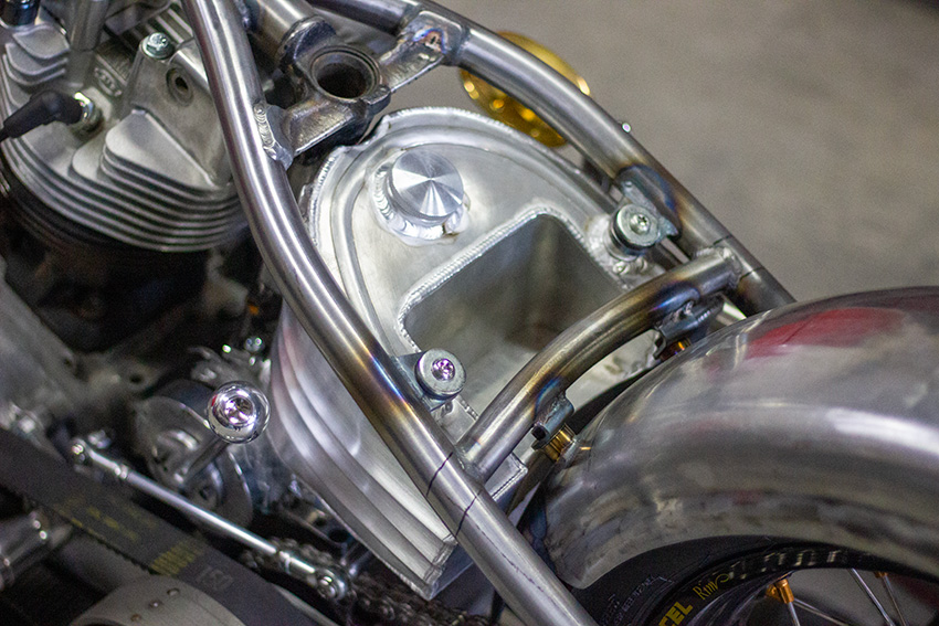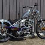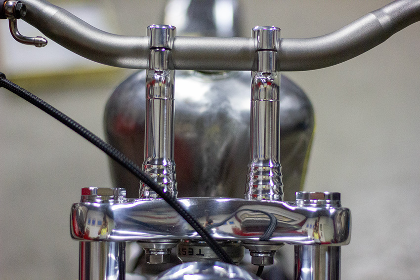 シルエットはハイマウントのスモールタンク、ハイパイプ、高いライザーという典型的なフリスコスタイル。