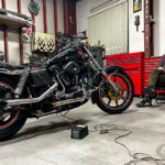 写真では休憩しているように見える社長ですが、インスタグラムで慣れない動画編集をしているところです。選曲に悩んだり、操作に悩んだりとバイクを触っている時とは大違い。