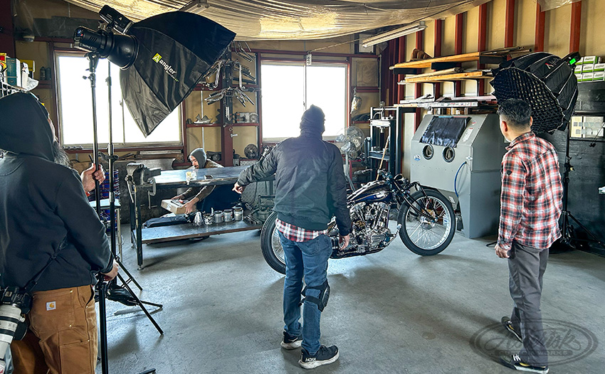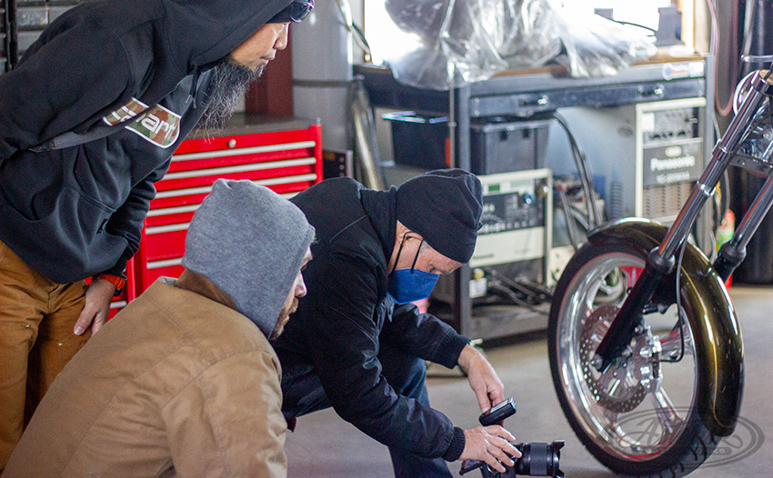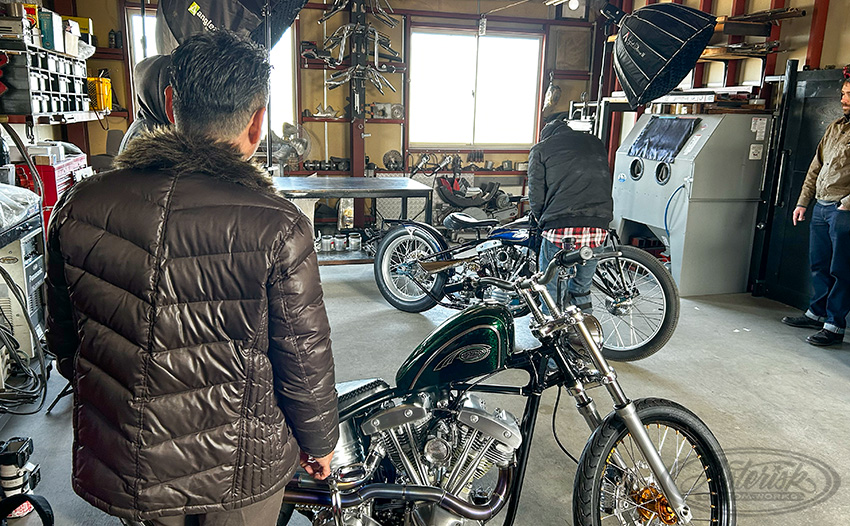 バイクとのツーショットでは、社長のポージングまで色々指示がきます。