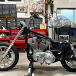 ノーマルスポーツスターのフロントフォークを少し長めに。